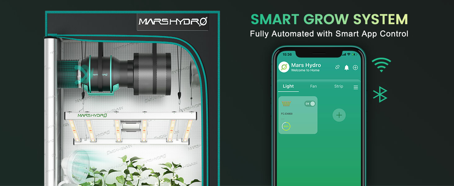 - Mars Hydro Smart Smart Grow System: lămpile inteligente de creștere din seria FC-E acceptă controlul mobil și programarea unui plan de cultivare prin intermediulaplicației Mars Hydro . Configurație precisă a intensității până la lună/zi/oră/minut pentru a obține niveluri dinamice de lumină și simularea răsăritului și apusului soarelui pentru a imita fotoperioada naturală la plante. Toate datele și setările sunt stocate și transferate prin tehnologia OTA , astfel încât utilizatorii pot avea acces instantaneu la cele mai recente actualizări prin WiFi.