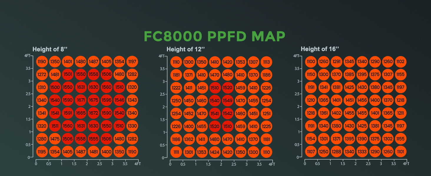 Mars Hydro Smart FC 8000 Samsung LM301B 800W LED Grow Light este un kit complet de lumină LED pentru cultivarea plantelor acasă (cort). Smart FC 8000 oferă control prin intermediulaplicației Mars Hydro prin telefon mobil sau Wi-Fi, inclusiv planificarea creșterii , reglarea automată a luminii , programarea în timp și planul de creștere , potrivite pentru cultivarea comercială pe scară largă sau cultivarea acasă de înaltă calitate. Smart FC 8000 asigură o emisie uniformă de lumină de 1500 μmol/m²/s , suficientă pentru a activa fotosinteza 100% și a obține un randament maxim la diferite concentrații de CO 2 .