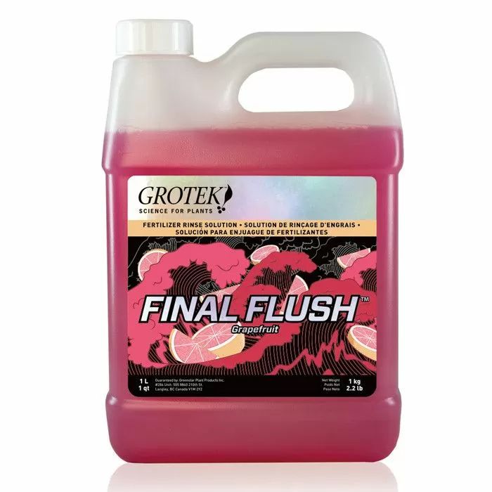 Grotek Final Flush is formulated to remove excess salts from the growing medium to ensure cleaner , tastier and more aromatic harvest . Plants tend to absorb excess nutrients and store them in plant tissues. By purifying nutrients from the root zone, plants are forced to convert the accumulated salts into secondary metabolites that improve the quality of the harvest. The result is a harvest of the highest quality with the expected taste and aroma.