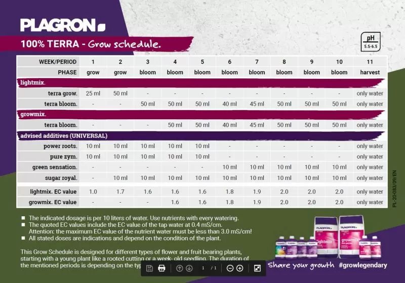 PLAGRON Terra Bloom 1l. este un îngrășământ nutritiv de bază pe bază de minerale pentru plante cu flori cultivate în sol . Acest îngrășământ lichid extrem de concentrat oferă o nutriție optimă în timpul fazei de înflorire și garantează o înflorire și o fructificare abundentă. Terra Bloom este potrivit pentru toate amestecurile de sol și poate fi utilizat împreună cu toate îngrășămintele și aditivii lichizi.