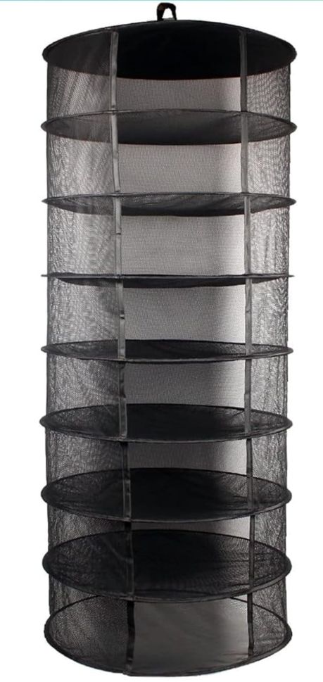 Plasă de uscare cu 8 niveluri și un diametru de ≈ 60 cm - o soluție eficientă și compactă pentru uscarea plantelor, ierburilor, fructelor, florilor, ciupercilor etc. Datorită platformelor separate, o cantitate mare de material poate fi uscată cu o bună ventilație și un flux uniform de aer.
