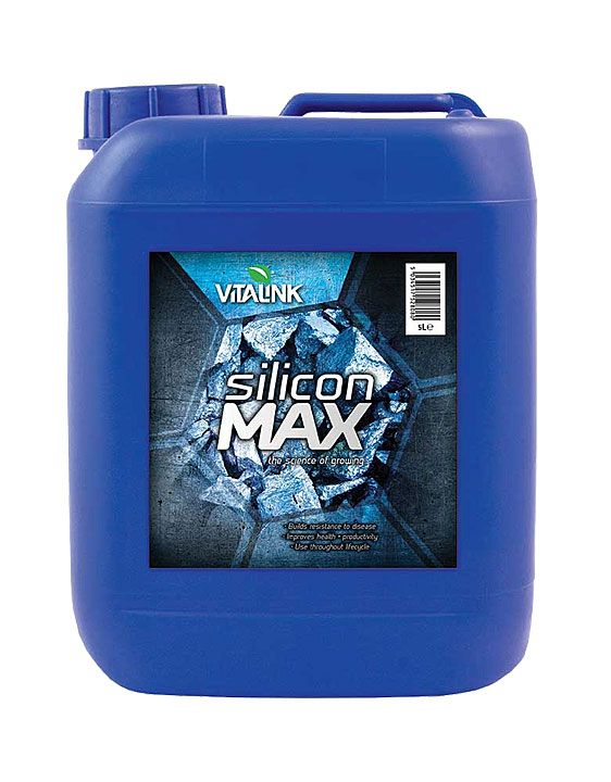 VitaLink Silicon MAX 5l. este un aditiv de siliciu foarte concentrat și ușor solubil, care este foarte alcalin. Siliciul este extrem de benefic pentru sănătatea plantelor - întărește pereții celulari pentru a produce plante mai puternice și mai mari, rădăcini mai groase și rezistență sporită la boli și stres. Îmbunătățește absorbția de CO 2 , producția de clorofilă și fotosinteza , rezultând producții mai mari și fructe mai grele.