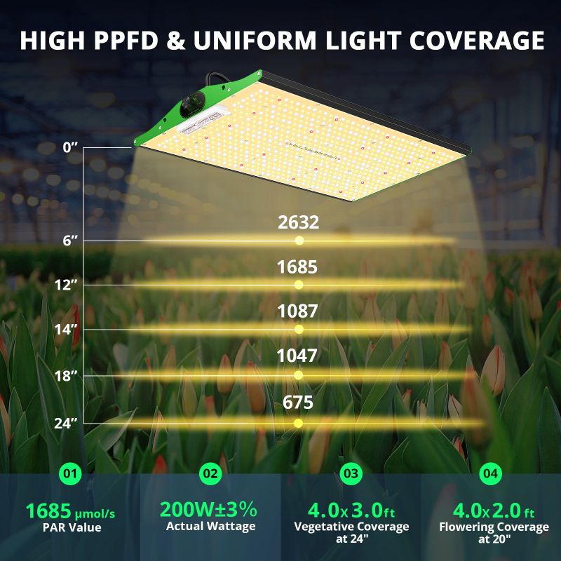ViparSpectra P2000 200W este o diodă / LED / iluminat cu gheață de înaltă eficiență pentru creșterea plantelor în interior.