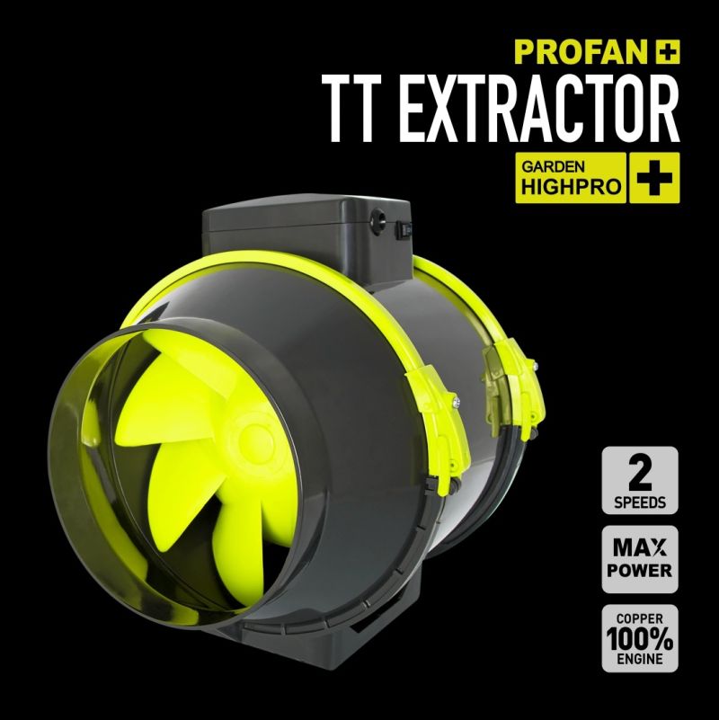 Garden Highpro PROFAN TT EXTRACTOR FAN 125 este un ventilator cu două viteze și un motor 100% din cupru (pentru o eficiență mai mare). Clemele din carcasă permit să fie îndepărtată cu ușurință (pentru curățare sau schimbarea direcției fluxului de aer) fără a fi nevoie să deconectați conductele de aer.