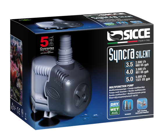 Sicce SYNCRA 5.0 5000l./h. este o pompa de apa extrem de silentioasa si economica care poate fi folosita pentru - rezervoare de alimente, acvarii, racire cu apa, fantani decorative etc. Produs folosind tehnologie inovatoare, face parte din gama de pompe fiabile Syncra SILENT, care se caracterizează prin eficiență ridicată și funcționare silențioasă.