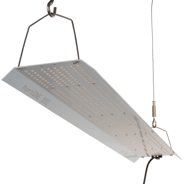 hortiOne 592 V2 este o lampă LED de interior și unul dintre cele mai bune produse de pe piață când vine vorba de raport calitate-preț ! Produsul are 592 buc. diode care produc un spectru complet de lumină , făcându-l potrivit pentru utilizare atât în fazele de creștere , cât și în fazele de înflorire ale dezvoltării plantelor. hortiOne 592 V2 oferă lumină emisă de înaltă calitate la un preț accesibil! Niveluri scăzute de căldură generată ( nu este necesară răcirea ) și nicio radiație de căldură activă către plantele dvs. Când creșteți în interior, 2 x hortiOne 592 V2 cu un consum total de doar 380W pot înlocui un bec HPS de 600W (pe baza PPF) !
