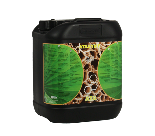 Atami ATAZYME 5l.Ușoară asimilarea nutrienților pentru plantă și reduce riscul de suprafertilizare. Stimulează viața în sol și are astfel un impact pozitiv imens asupra dezvoltării sistemului radicular și asupra creșterii și înfloririi culturii. Atazyme descompune resturile de plante moarte și rădăcini din substrat și astfel reduce riscul de boli ale solului.
