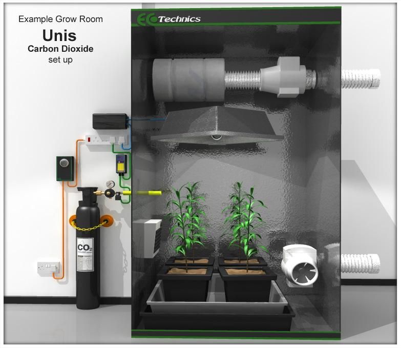 Carbonul este unul dintre principalii factori pentru cultivarea în interior sau în seră. Fotosinteza este un proces în care o moleculă de carbon se combină cu o moleculă de apă pentru a forma zaharuri complexe. Ca rezultat, un atom de oxigen de rezervă este eliberat înapoi în aer, zaharurile sunt procesate în continuare de către plantă pentru a forma polimeri naturali pentru creștere. Nivelul de CO 2 din aer este în mod normal de 300-400 ppm, iar plantele cu creștere rapidă din camera de cultură sau din seră pot folosi tot CO 2 disponibil în mai puțin de o oră, ceea ce va duce la o întârziere a fotosintezei și, prin urmare, a creșterii.