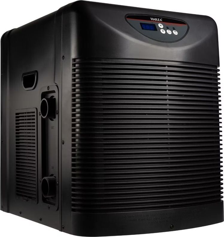 - Eficiența de răcire este determinată de locația de instalare, sursa de încălzire, iluminatul, filtrul pompei și alte piese de conectare. Trebuie utilizate pompe speciale și alte accesorii vândute împreună cu chillerele din seria Hailea. Nu utilizați alte alternative pentru a evita afectarea performanței unității.